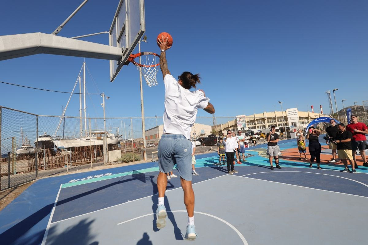 Κατά την τελετή εγκαινίων, ο Γιώργος Πρίντεζης, εμπνευστής του Stoiximan AegeanBall Festival και ambassador της Stoiximan μέσω του προγράμματος εταιρικής υπευθυνότητας “Ήρωες” συμμετείχε στο κόψιμο της κορδέλας, μαζί με τον Δήμαρχο Σύρου-Ερμούπολης κ. Αλέξη Αθανασίου και της Μαρίας Καλαποθαράκου, Head of Communications & CSR της Stoiximan. Ακολούθησε η αποκάλυψη του stencil με το μήνυμα «Για τη Σύρο», που φέρει την προσωπική υπογραφή της «ψυχής» του φεστιβάλ, Γιώργου Πρίντεζη — μια κίνηση με έντονο συμβολισμό, που επισφράγισε τη βαθιά του σύνδεση με τον τόπο καταγωγής του. Ο εμβληματικός αθλητής έκανε και το πρώτο συμβολικό σουτ στο νέο γήπεδο, δίνοντας το έναυσμα για το πρώτο, αυθόρμητο παιχνίδι. Τα παιδιά του νησιού μπήκαν στο παρκέ με ενθουσιασμό, σε μια στιγμή που γέμισε το γήπεδο με χαμόγελα και ζωντάνια.