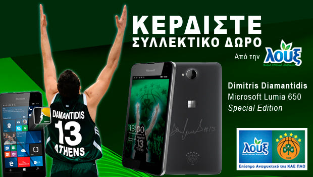 Μπείτε στον μεγάλο διαγωνισμό του Sport24.gr για να κερδίσετε ένα συλλεκτικό κινητό τηλέφωνο "Dimitris Diamantidis Microsoft Lumia 650 Special Εdition" μαζί με το application Diamantidis#13, προσφορά της "Λουξ".
