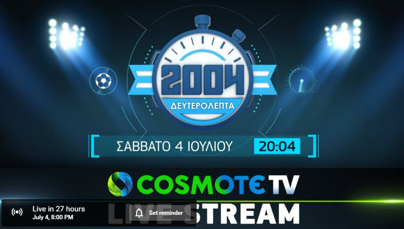 Η επετειακή εκπομπή "2004 Δευτερόλεπτα" με θέμα την ιστορική κατάκτηση του Ευρωπαϊκού πρωταθλήματος από την Εθνική Ελλάδος και με πρωταγωνιστές τους θρύλους της «χρυσής» ομάδας του 2004 ολοκληρώνετε αύριο.