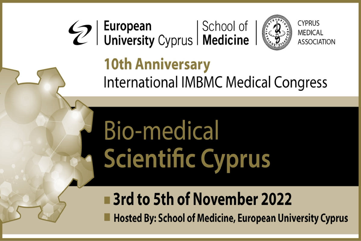 Η Ιατρική Σχολή του Ευρωπαϊκού Πανεπιστημίου Κύπρου με συν-διοργανωτή τον Παγκύπριο Ιατρικό Σύλλογο διοργανώνει το 10ο Διεθνές Βίο-Ιατρικό Συνέδριο, «Ιατρική/Βίο-Ιατρική Επιστημονική Κύπρος», με γενικό τίτλο: «Ιατρική Σχολή: Μέσον Επιστήμης και Πολιτισμού». Το τριήμερο Συνέδριο τελεί υπό την αιγίδα του Υπουργείου Υγείας, της Κυπριακής Καρδιολογικής Εταιρείας, της Βιολογικής Εταιρείας Κύπρου, του Παγκύπριου Συνδέσμου Καρκινοπαθών και Φίλων, και άλλων συνδέσμων, εταιρειών και συλλόγων. Η επίσημη τελετή έναρξης θα πραγματοποιηθεί την Πέμπτη 3 Νοέμβριου στις 17:00, ενώ το τριήμερο συνέδριο θα ολοκληρωθεί το Σάββατο με την αναγόρευση των βραβευμένων με Νόμπελ ιατρών Sir Martin Evans και Sir Gregory Winter σε Επίτιμους Διδάκτορες της Ιατρικής Σχολής του Ευρωπαϊκού Πανεπιστημίου Κύπρου.