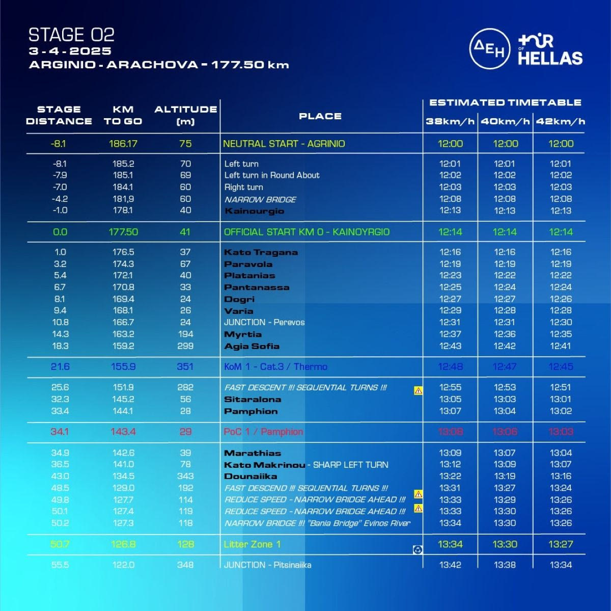 Με αριστερή στροφή έξω από τη Ναύπακτο από τον Περιφερειακό και στην ακτογραμμή του Κορινθιακού κόλπου, οι ποδηλάτες θα φθάσουν στην όμορφη κωμόπολη της Ιτέας, όπου θα γίνει το 2ο σπριντ ευθείας. Μετά την Ιτέα οι ποδηλάτες θα κινηθούν αριστερά και θα ανηφορίσουν προς τους Δελφούς και θα κατευθυνθούν προς την Αράχωβα και στο Πολιτιστικό Κέντρο, όπου θα γίνει ο τερματισμός του 2ου ετάπ του φετινού ΔΕΗ Tour of Hellas 2025.