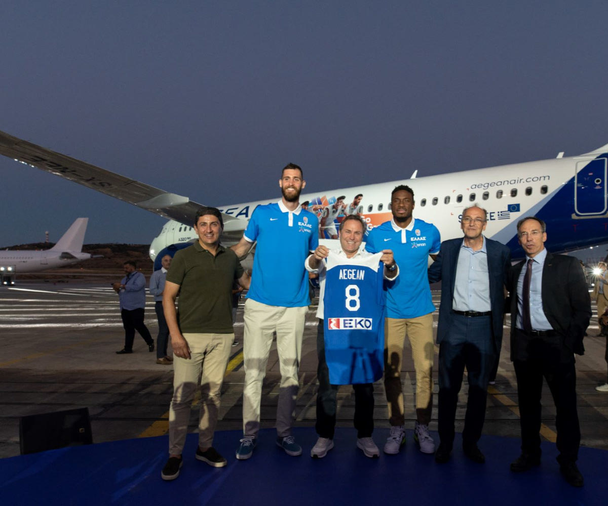 Η ανανέωση της χορηγικής συνεργασίας μεταξύ της AEGEAN και της Ελληνικής Ομοσπονδίας Καλαθοσφαίρισης για 8η συνεχομένη χρονιά καθώς και το αεροπλάνο της εθνικής με τα πρόσωπα των παικτών να κοσμούν στο εξής το εξωτερικό του αεροσκάφους, παρουσιάστηκαν από τον Πρόεδρο της AEGEAN κ. Ευτύχιο Βασιλάκη και τον Πρόεδρο της ΕΟΚ κ. Ευάγγελο Λιόλιο σε ειδική εκδήλωση που πραγματοποιήθηκε στην τεχνική βάση της εταιρείας. Ταυτόχρονα, ανακοινώθηκε η μετονομασία του δημοφιλούς τουρνουά προετοιμασίας «Ακρόπολις» σε τουρνουά «AEGEAN Ακρόπολις» και θα πραγματοποιηθεί στην Αθήνα 17-19 Αυγούστου, σηματοδοτώντας το ξεκίνημα του ταξιδιού της εθνικής μας για τη μεγαλύτερη διοργάνωση μπάσκετ της Ευρώπης.