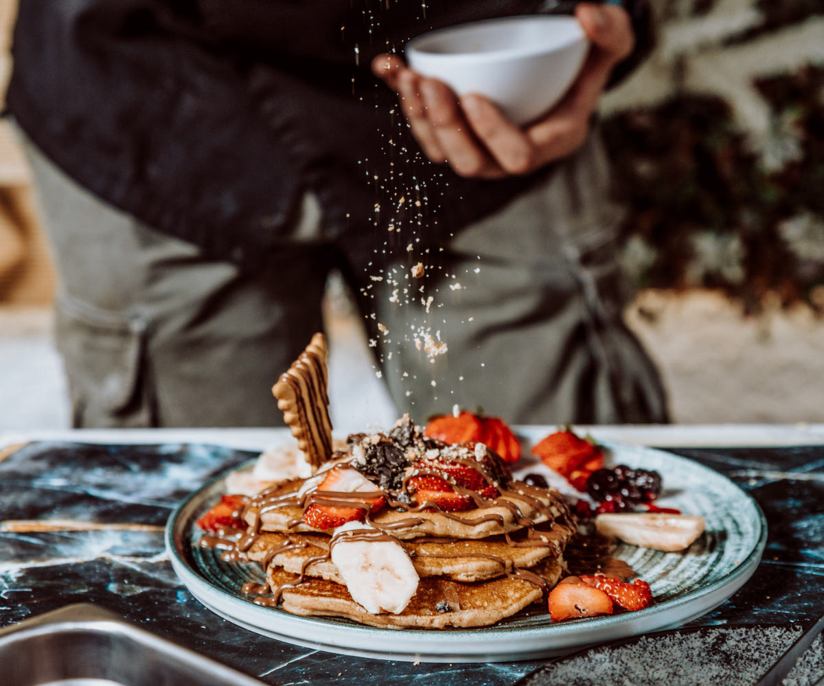 Tip: Δοκιμάστε για brunch το φρέσκο αλμυρό κρουασάν βουτύρου με scrambled eggs και γουακαμόλε, όπως και τα sweet pancakes με σοκολάτα γάλακτος με φρέσκα φρούτα.