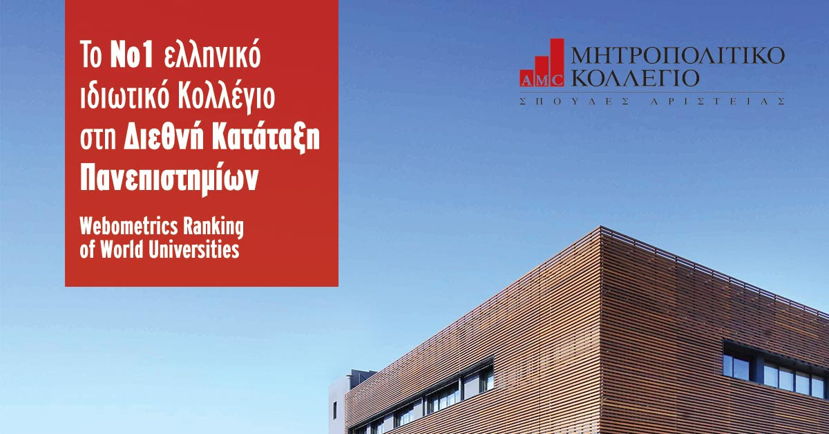 Μητροπολιτικό Κολλέγιο: Το Νο1 ελληνικό ιδιωτικό Κολλέγιο στη Διεθνή Κατάταξη Πανεπιστημίων