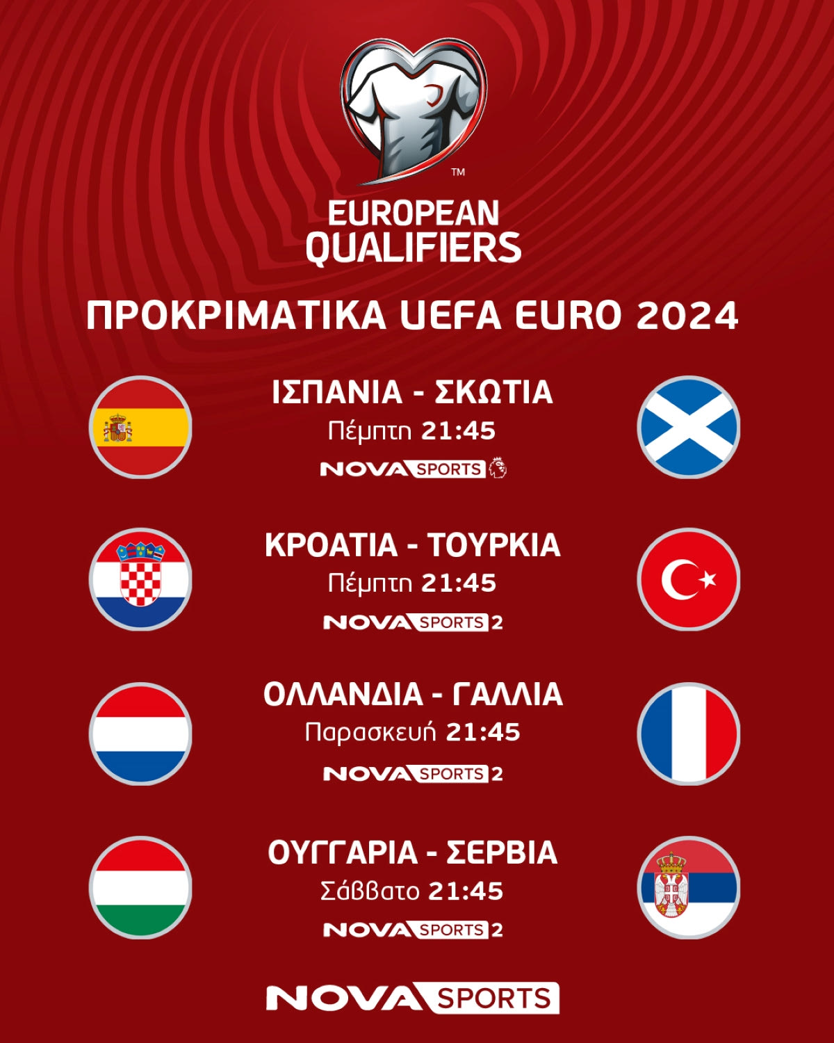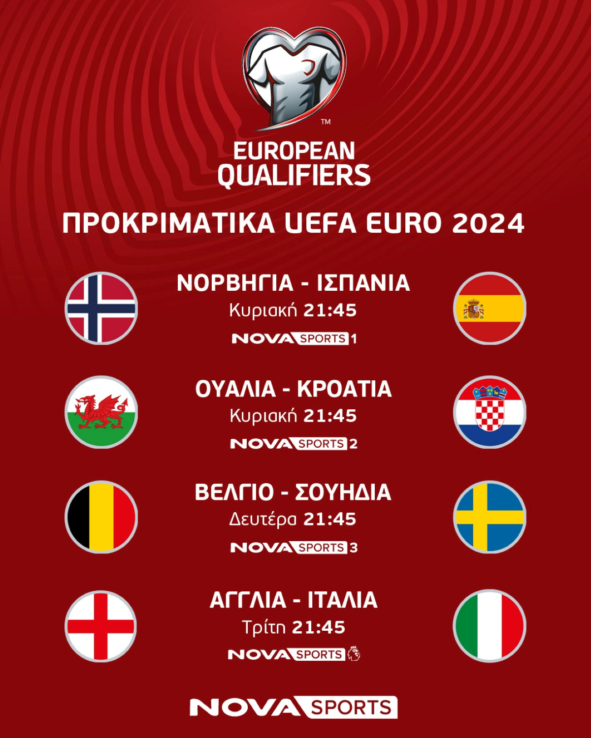 Συναρπαστικό θέαμα με τις Εθνικές ομάδες της UEFA για τα προκριματικά του Euro 2024 έρχεται και τον Οκτώβριο αποκλειστικά στο γήπεδο του Novasports!