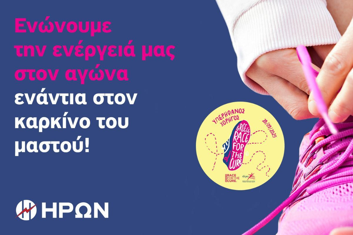 Ο ΗΡΩΝ, ο κορυφαίος παραγωγός και προμηθευτής ενέργειας στην Ελλάδα και μέλος του Ομίλου ΓΕΚ ΤΕΡΝΑ, στο πλαίσιο των δράσεων Εταιρικής Κοινωνικής Υπευθυνότητας, θα συμμετάσχει φέτος ως Βασικός Χορηγός στο 17ο Greece Race for the Cure®, που θα πραγματοποιηθεί το Σάββατο 27 και την Κυριακή 28 Σεπτεμβρίου 2025, στο Ζάππειο.