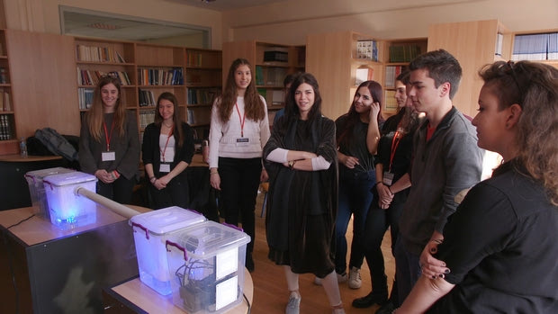Πίσω στην Αθήνα γνωρίσαμε επίσης τον Λεωνίδα, έναν φοιτητή που προετοιμάζει εθελοντικά μαθητές Λυκείου για έναν διαγωνισμό επιχειρηματικότητας νέων – στον οποίο είχε κερδίσει πριν λίγα χρόνια και ο ίδιος. Τέλος, συναντήσαμε και μαθητές από το Λεόντειο Λύκειο Νέας Σμύρνης, που δημιούργησαν ένα μέσο μετατροπής ηλιακής ενέργειας σε ηλεκτρική, καθώς κι έναν επίδοξο μαθητή από τα Χανιά, ο οποίος κατασκεύασε έναν 3D εκτυπωτή και έναν ρομποτικό βραχίονα.