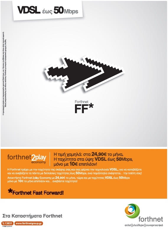 Οι τιμές χαμηλά: Forthnet ADSL με 17,90€ & Forthnet 2play Economy με 24,90€, η ταχύτητα στα ύψη: Mε VDSL έως 50Mbps, μόνο με 10€ επιπλέον, το μήνα!