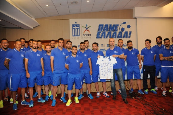 Στο πλαίσιο της παρουσίασης, ο κ. Petr Matejovsky, CMO της ΟΠΑΠ, ο Αναπληρωτής Πρόεδρος της ΕΠΟ, κ. Ιωάννης Παπακωνσταντίνου, ο προπονητής της Εθνικής Ομάδας, Φερνάντο Σάντος και ο Αρχηγός της Ομάδας, Γιώργος Καραγκούνης, απηύθυναν σύντομους χαιρετισμούς, ενώ η εκδήλωση έκλεισε σε πανηγυρικό κλίμα με την αίθουσα να σείεται από το τραγούδι του συνθήματος! Μέσα σε πανηγυρισμούς και χειροκροτήματα, η Ομάδα κατευθύνθηκε προς το Αεροδρόμιο συνοδευόμενη από τις ευχές όλων για καλή τύχη.