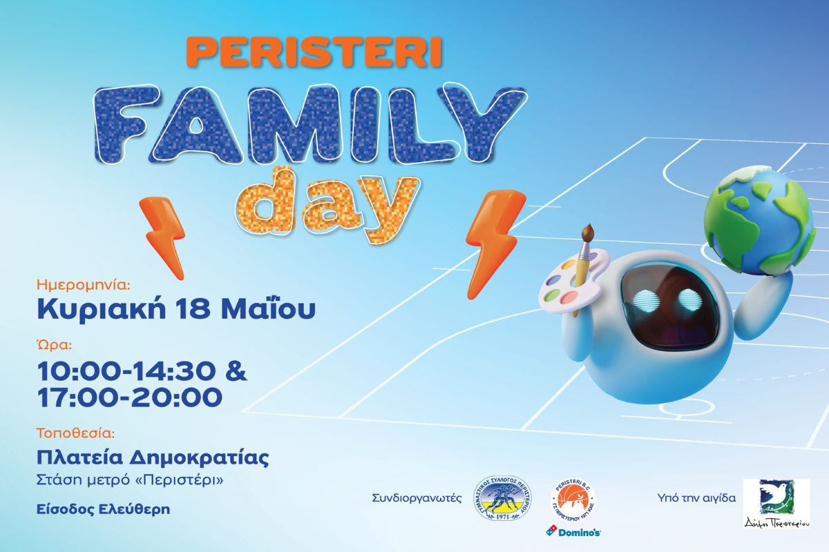 H ομάδα μπάσκετ Περιστέρι Domino’s και ο Γυμναστικός Σύλλογος Περιστερίου γιορτάζουν το τέλος της αγωνιστικής περιόδου και με τη στήριξη του χορηγού της ομάδας, ΗΡΩΝ, σάς προσκαλούν όλους στην εκδήλωση «Peristeri Family Day» powered by ΗΡΩΝ που θα πραγματοποιηθεί την Κυριακή 18 Μαΐου στην Πλατεία Δημοκρατίας (δίπλα στο Δημαρχείο).