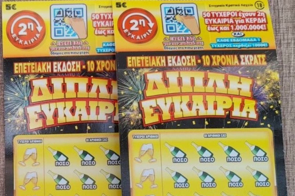 Το παιχνίδι «ΔΙΠΛΗ ΕΥΚΑΙΡΙΑ» γιορτάζει τα 10 χρόνια του ΣΚΡΑΤΣ, μοιράζοντας 100.000 ευρώ σε 10 νικητές, ενώ δίνει την ευκαιρία στους παίκτες να διεκδικήσουν έως και 1.000.000 ευρώ, ακόμα και αν ο λαχνός τους δεν κερδίσει.