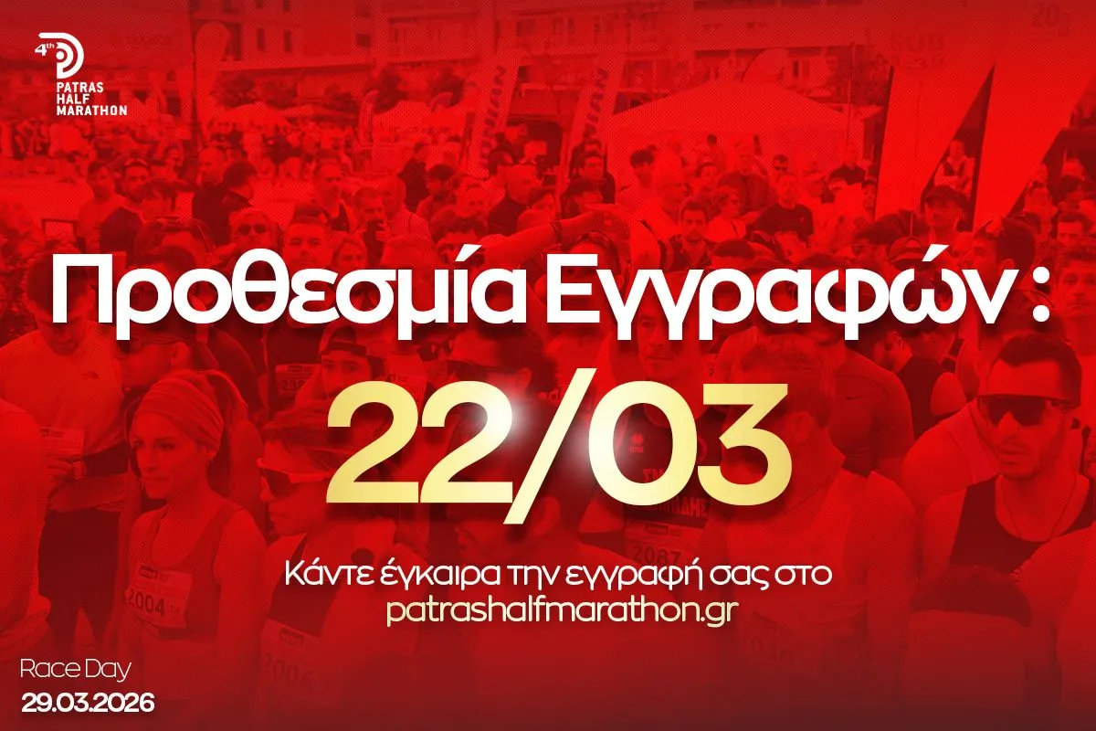 Οι εγγραφές ολοκληρώνονται την Κυριακή 22 Μαρτίου στις 23:59, μέσω της επίσημης ιστοσελίδας της διοργάνωσης: www.patrashalfmarathon.gr