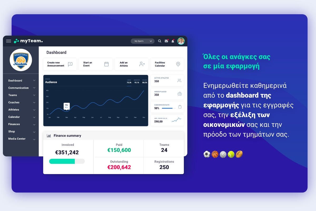 Γι’ αυτό και σήμερα είναι αναγκαίος όσο ποτέ ο ψηφιακός μετασχηματισμός των αθλητικών σωματείων. Και στο σημείο αυτό έρχεται το myTeam, η πρωτοποριακή πλατφόρμα διαχείρισης αθλητικών ακαδημιών που βοηθά τους προπονητές, τους γονείς και τους αθλητές να οργανώνουν και να αναπτύσσουν τις δραστηριότητές τους με αποτελεσματικότητα και ευκολία.