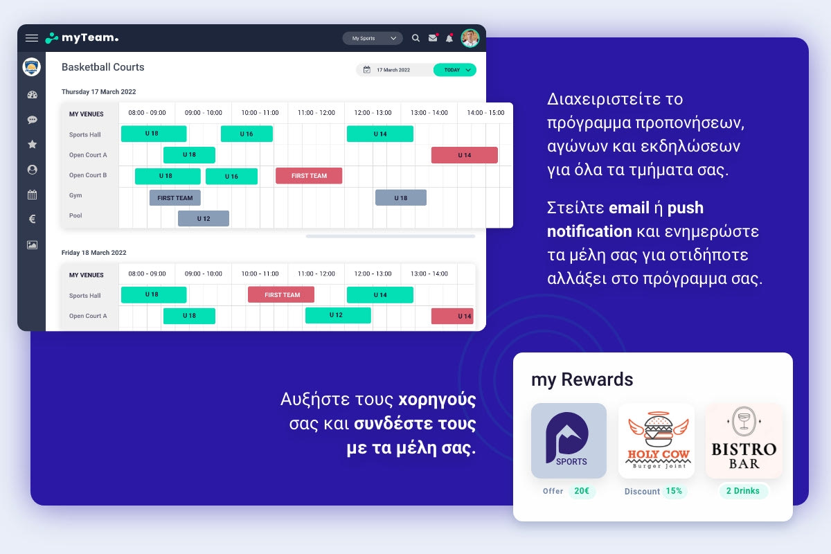 Συγκεκριμένα το myTeam για τη διοίκηση/staff ενός συλλόγου σημαίνει: