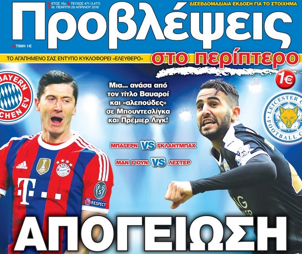 Οι προβολείς σε Αγγλία και Γερμανία! Οι «ΠΡΟΒΛΕΨΕΙΣ στο περίπτερο», που κυκλοφορούν ΛΟΓΩ ΠΑΣΧΑ την Μεγάλη Πέμπτη 28 Απριλίου, προσφέρουν όλη την ειδησεογραφία και τα στατιστικά για τα παιχνίδια του κουπονιού!