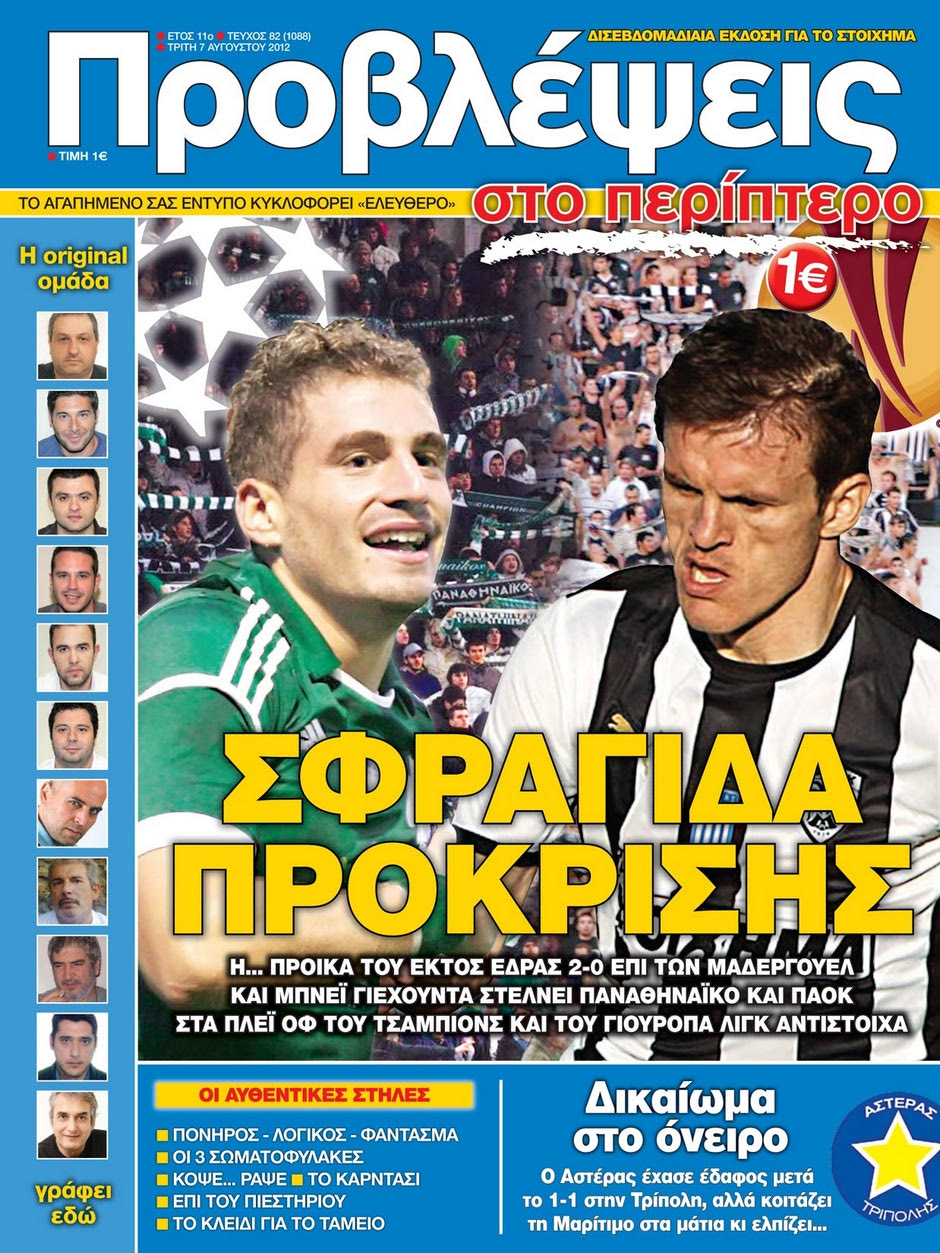 Συνεχίζεται το ευρωπαϊκό ταξίδι των ελληνικών ομάδων. Παναθηναϊκός και ΠΑΟΚ βρίσκονται με... το ένα πόδι στην επόμενη φάση, ελπίζει για την πρόκριση ο Αστέρας Τρίπολης. Οι "ΠΡΟΒΛΕΨΕΙΣ στο περίπτερο" που κυκλοφορούν την Τρίτη 7 Αυγούστου αναλύουν όλα τα παιχνίδια σε Τσάμπιονς και Γιουρόπα Λιγκ.