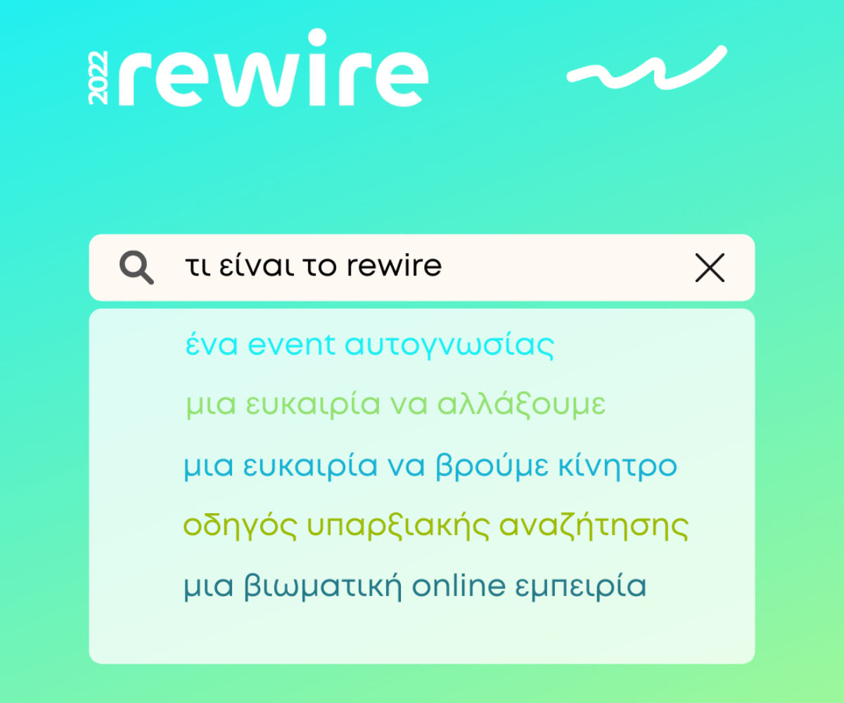 Ανακαλύψτε περισσότερα για τη νεοσύστατη κοινότητα του Rewire, δείτε την ατζέντα και τους ομιλητές και εγγραφείτε στο Rewire 2022 εντελώς δωρεάν, μέσα από την επίσημη ιστοσελίδα.