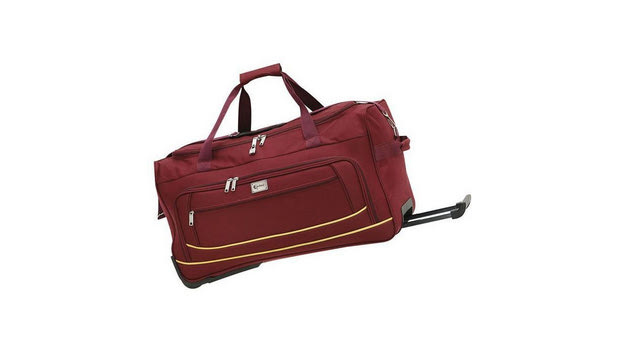Σάκος ταξιδίου polyester με ρόδες (τροχοτσάντα) με γωνιακούς τροχούς, μία κεντρική θήκη, μία εξωτερική τσέπη και μια τσέπη-φερμουάρ.