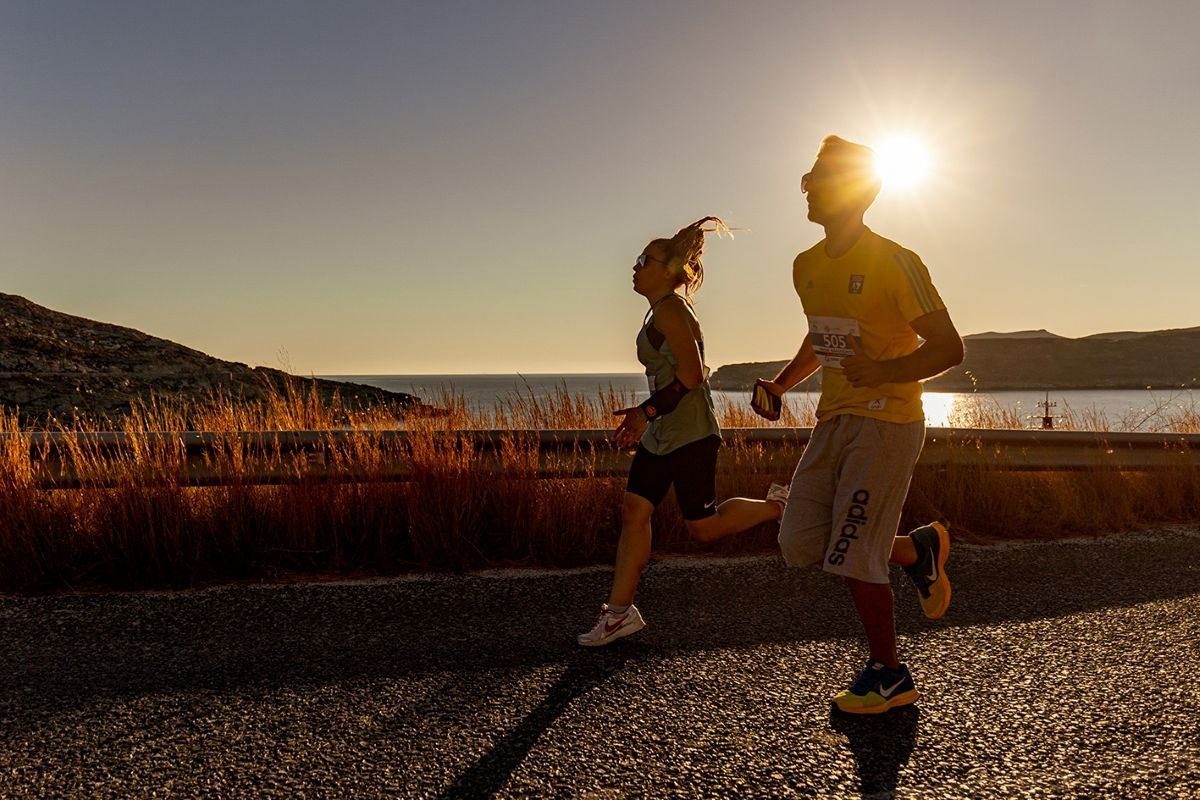 Ο αγώνας που ξεχωρίζει τη διοργάνωση είναι οι αγώνες δρόμου 5 και 10χλμ που διεξάγονται το απόγευμα του Σαββάτου (14/9) στη διάρκεια του ηλιοβασιλέματος, με τους συμμετέχοντες να έχουν την ευκαιρία να τρέξουν σε μια μοναδική διαδρομή, παράλληλα με τη θάλασσα περιμετρικά του κόλπου του Κουταλά, διασχίζοντας τις πανέμορφες παραλίες της Βαγιάς, του Γανέματος και του Κουταλά απολαμβάνοντας συγχρόνως το μοναδικό ηλιοβασίλεμα της περιοχής από την μία και την άγρια ομορφιά του Κυκλαδίτικου τοπίου από την άλλη.