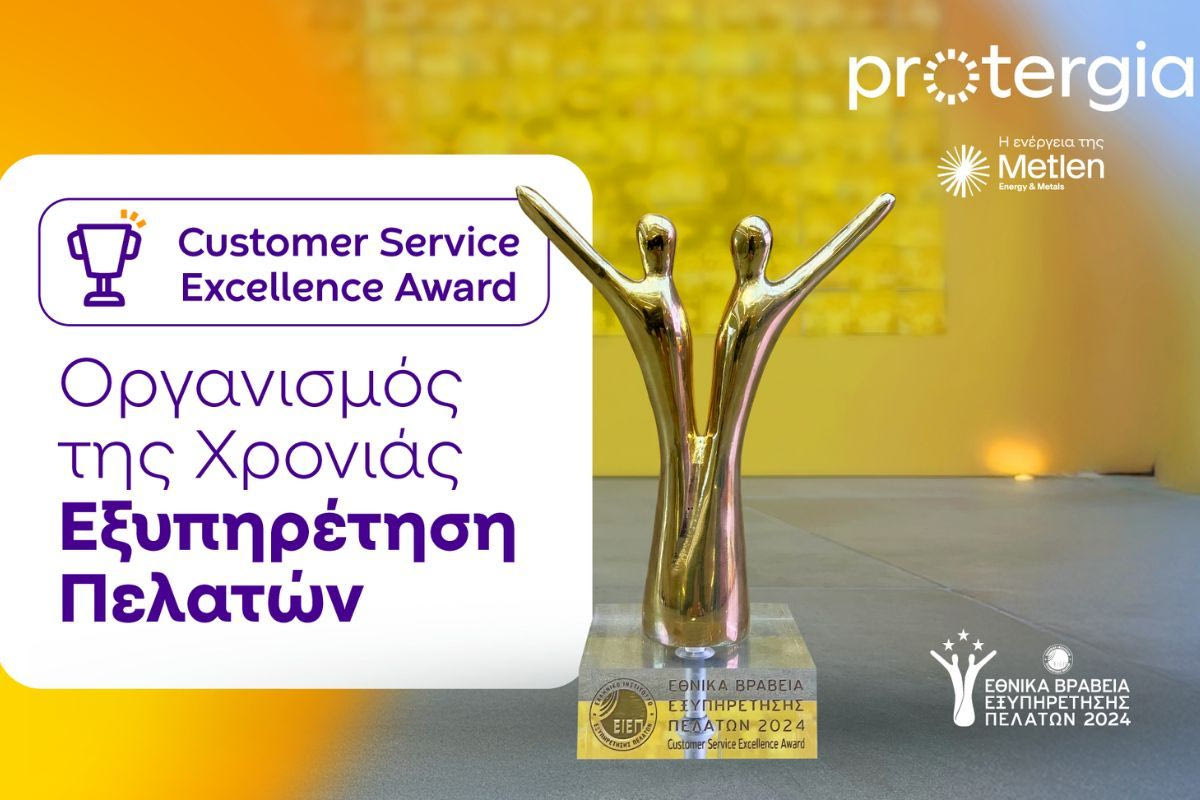 Με μεγάλη χαρά, σας ενημερώνουμε ότι η Protergia, η ενέργεια της METLEN Energy & Metals, τιμήθηκε με το Customer Service Excellence Award στην κατηγορία «Οργανισμός της Χρονιάς: Εξυπηρέτηση Πελατών – Customer Service Organisation of the Year» για το 2024.
