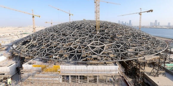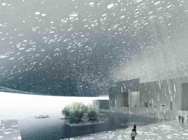 Το Λούβρο του Άμπου Ντάμπι καλύπτει περιοχή 64 χιλιάδων τετραγωνικών μέτρων και χτίστηκε στο νησί Saadiyat. Αναμένεται να ολοκληρωθεί και να ανοίξει σύντομα τις πύλες του για το κοινό στα τέλη του 2015.Το εντυπωσιακό στοιχείο του έργου είναι το στέγαστρο, για το οποίο χρειάστηκαν περίπου 2000 τόνοι αλουμινίου, απ’ τους οποίους δημιουργήθηκαν 8 στρώσεις- διαφορετικών διαστάσεων -ενωμένων αστεριών, για να πετύχουν το αποτέλεσμα της βροχής αχτίδων φωτός.