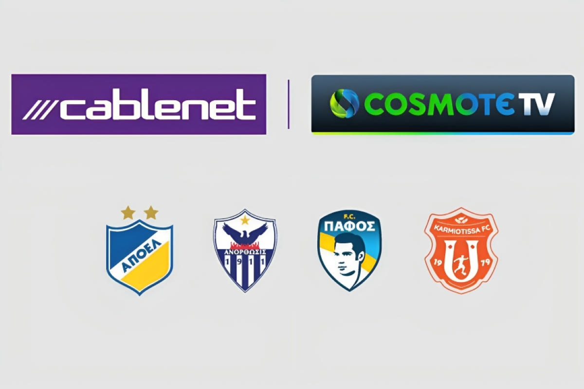 Η Cablenet και η COSMOTE TV ανακοινώνουν την συνεργασία τους για την αποκλειστική μετάδοση των κορυφαίων αγώνων του Παγκύπριου Πρωταθλήματος Ποδοσφαίρου τώρα και στην Ελλάδα. Οι επιλεγμένοι εντός έδρας αγώνες των Κυπριακών ποδοσφαιρικών ομάδων του ΑΠΟΕΛ, της Ανόρθωσης, της Πάφος FC και της Καρμιώτισσας, θα προβάλλονται ζωντανά και αποκλειστικά στα κανάλια COSMOTE SPORT για τη σεζόν 2023-24.