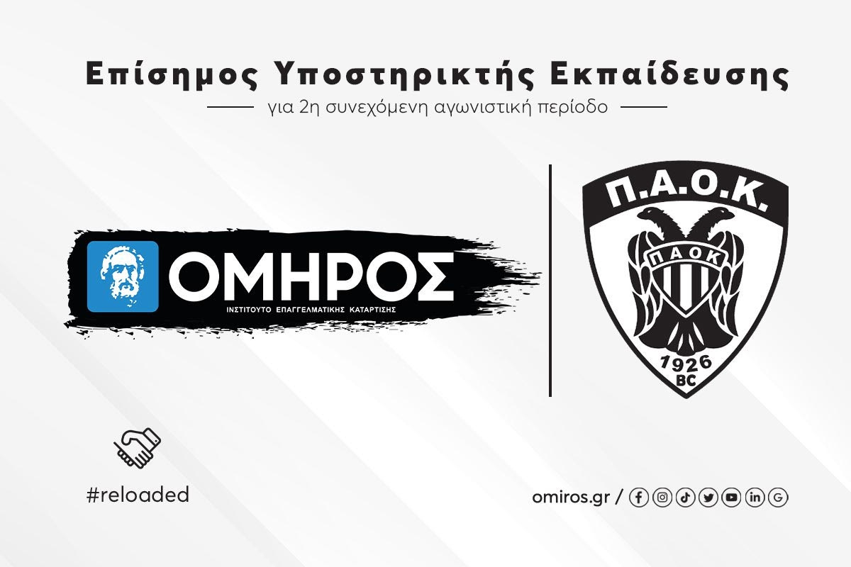 Το ΙΕΚ ΟΜΗΡΟΣ προχώρησε σε ανανέωση της στρατηγικής συνεργασίας με την ΚΑΕ ΠΑΟΚ Mateco ως Επίσημος Υποστηρικτής Εκπαίδευσης, για την αγωνιστική περίοδο 2023-2024