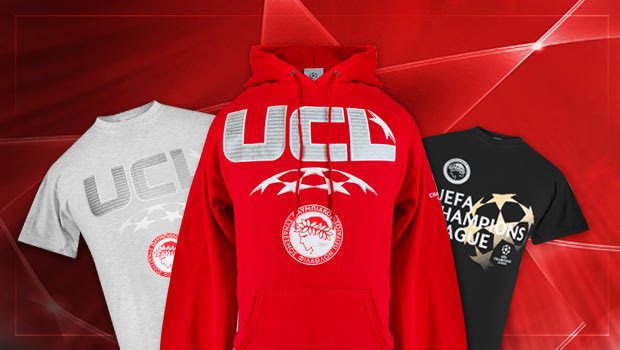 Η επίσημη συλλογή προϊόντων της μεγαλύτερης διοργάνωσης της Ευρώπης κατακλύζεται από τα ερυθρόλευκα χρώματα σε φούτερ , T-shirt , αξεσουάρ αλλά και με τα διπλά αναμνηστικά κασκόλ των αντιπάλων του Θρύλου στους ομίλους!