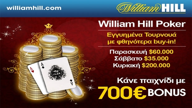 Κάνε παιχνίδι στο William Hill Poker και διεκδίκησε $60.000 Εγγυημένα την Παρασκευή, $35.000 Εγγυημένα το Σάββατο και $200,000 εγγυημένα την Κυριακή! Μόνο στο William Hill Poker …