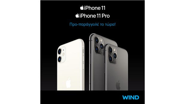 Στη WIND έχουν ξεκινήσει ήδη οι προ παραγγελίες των νέων iPhone11 τα οποία θα είναι εμπορικά διαθέσιμα από τις 27 Σεπτεμβρίου στο δίκτυο των καταστημάτων της και στο wind.gr.