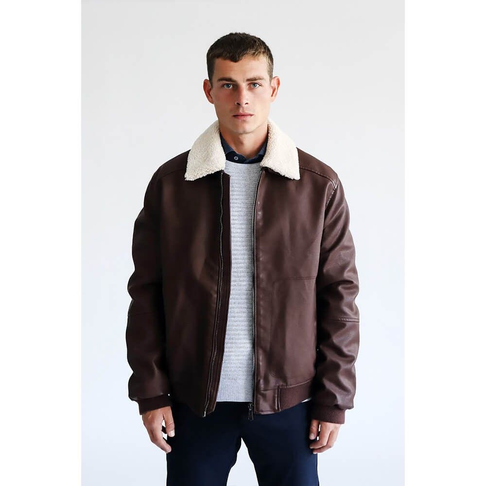 Prince Oliver Aviator Jacket Eco Leather Καφέ (Modern Fit), Αρχική τιμή: 198 €, με Έκπτωση: 89.99 €