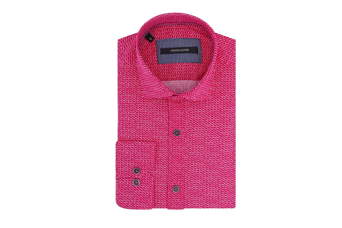 Ένα μακρυμάνικο πουκάμισο με μικροσχέδιο αποτυπώνει τη δημιουργική υπεροχή του οίκου Prince Oliver και συνθέτει ένα ολοκληρωμένο ιταλιάνικο look. Με εσωτερικό διάκοσμο στην πατιλέτα, στο κολάρο και στη μανσέτα για master roll γύρισμα, είναι το άλλο μισό του chinos παντελονιού, ενώ φλερτάρει φανερά με τα σακάκια και τα oxford παπούτσια.