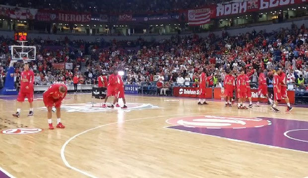 Μόλις οι παίκτες του Ολυμπιακού πέρασαν στο παρκέ για την έναρξη της προθέρμανσής τους, γνώρισαν την αποθέωση από τους “ντέλιγιε” (video)