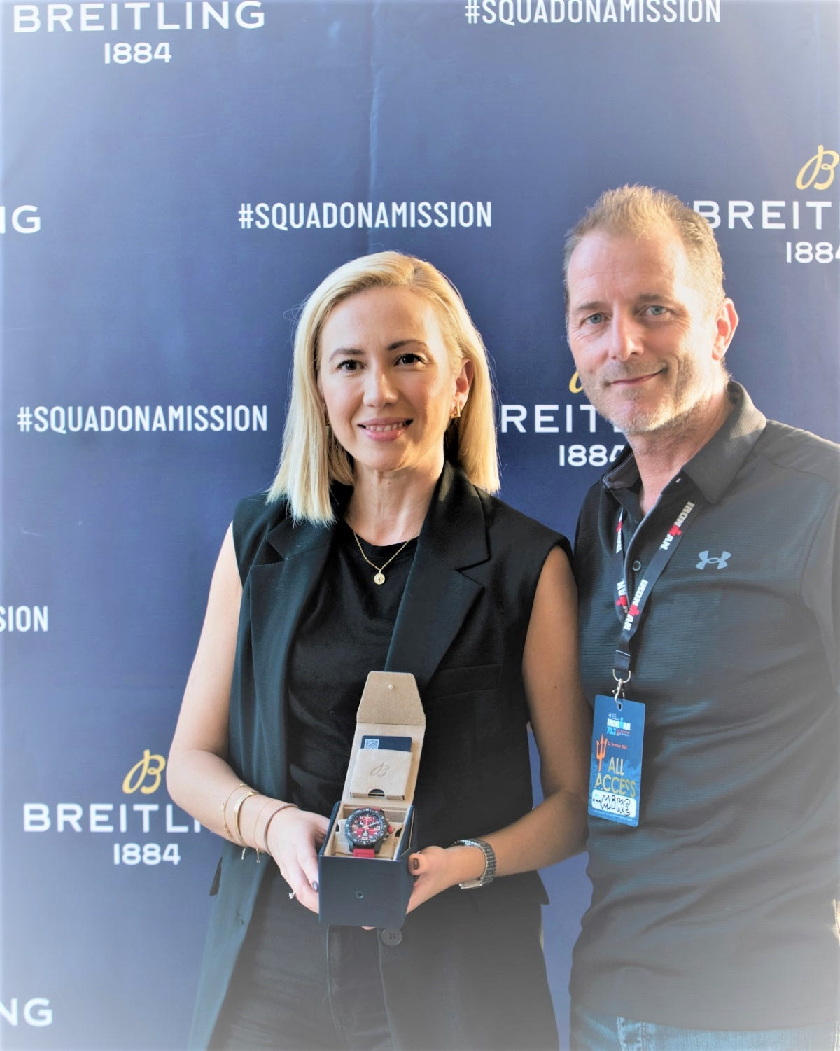 Ένα ρολόι ENDURANCE PRO IRONMAN κατέληξε ύστερα από κλήρωση στον καρπό του αθλητή από το Hong Kong που ταξίδεψε στη χώρα μας για να συμμετάσχει στον μεγαλύτερο και πιο απαιτητικό αγώνα τριάθλου στον κόσμο. Ο μονοήμερος αγώνας που πραγματοποιήθηκε για τρίτη φορά στη χώρα μας και πρώτη φορά στη Βουλιαγμένη με τη συμμετοχή περισσότερων από 1600 αθλητών από 65 χώρες, στέφθηκε με απόλυτη επιτυχία και το Squad της Breitling βρέθηκε εκεί για να προσφέρει ένα έπαθλο μεγάλης αξίας στις απονομές που ακολούθησαν.
