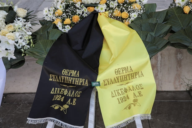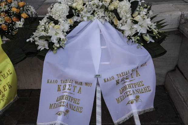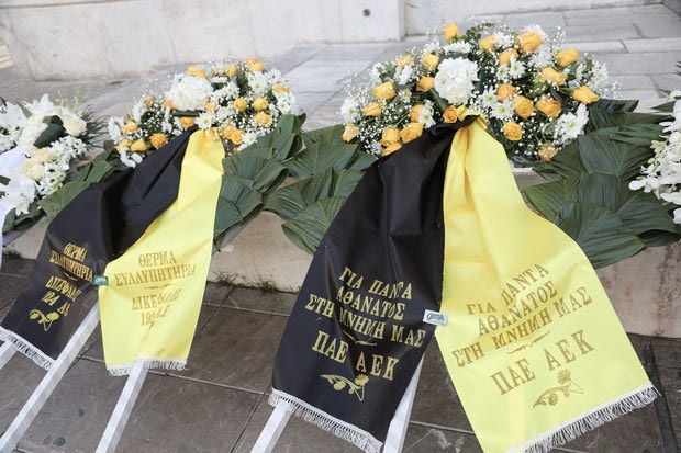 Το στεφάνι της ΠΑΕ ΑΕΚ στην κηδεία του Κώστα Βουτσά