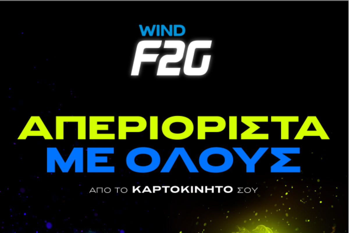 Το ανανεωμένο πρόγραμμα Καρτοκινητής WIND F2G προσκαλεί υφιστάμενους και νέους συνδρομητές να ζήσουν την εμπειρία της απεριόριστης ομιλίας προς όλα τα δίκτυα χωρίς περιορισμούς, με ακόμη περισσότερα Data & SMS: