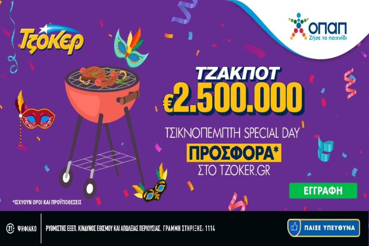 Για την προσφορά αυτή ισχύουν όροι και προϋποθέσεις και οι παίκτες μπορούν να μάθουν περισσότερα μπαίνοντας στο tzoker.gr ή στο tzoker app.
