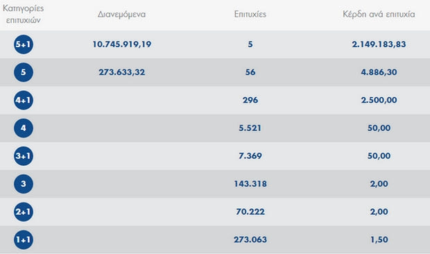 Οι τυχεροί αριθμοί που έβγαλε η κληρωτίδα της προηγούμενης κλήρωσης ήταν οι: 7, 9, 22, 27, 36 και Τζόκερ ο αριθμός 18.