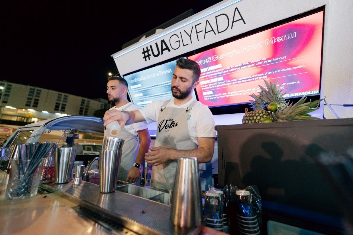 Από νωρίς το απόγευμα, οι καλεσμένοι κατέκλυσαν τον χώρο. Ένα container που έμοιαζε με… αποδυτήρια έδωσε το έναυσμα για ατελείωτα Instagram stories, ενώ παραδίπλα ο πρωταθλητής του NBA Stephen Curry έγινε για λίγο… “Chef” Curry ώστε να προσφέρει δροσιστικά signature cocktails και τα πιο ιδιαίτερα bites σε δυνατούς συνδυασμούς, γεμάτους ενέργεια και καλή διάθεση!
