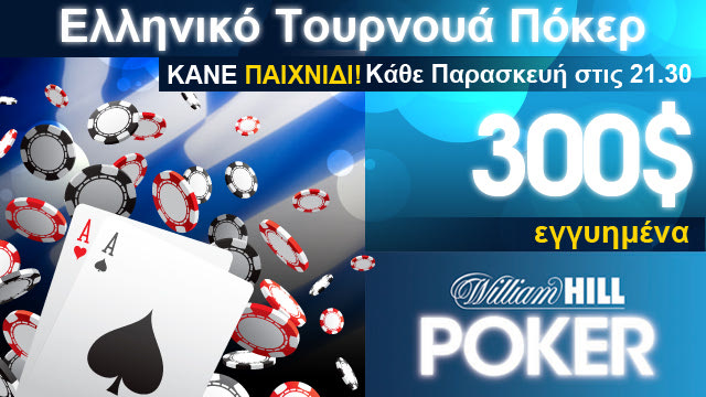 Τα ελληνικά τουρνουά πόκερ στο William Hill είναι πλέον γεγονός! Κάθε Παρασκευή στις 21.30 στρωθείτε στα τραπέζια του William Hill Poker για το Weekly Greek WH Tournament!