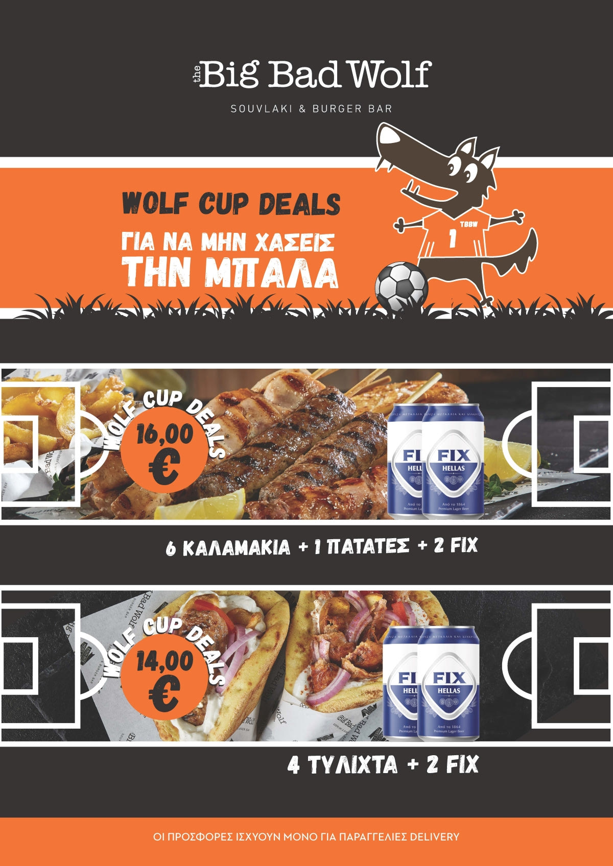 Η αλυσίδα The Big Bad Wolf Souvlaki & Burger Bar γιορτάζει την κορυφαία ποδοσφαιρική διοργάνωση με 8 ασυναγώνιστες προσφορές, τα Wolf Cup Deals που ισχύουν για τις παραγγελίες delivery την περίοδο 21/11-18/12. Οι καταναλωτές μπορούν να τα απολαύσουν είτε παραγγέλνοντας μέσω efood, είτε τηλεφωνώντας στο 211.100.100.1.