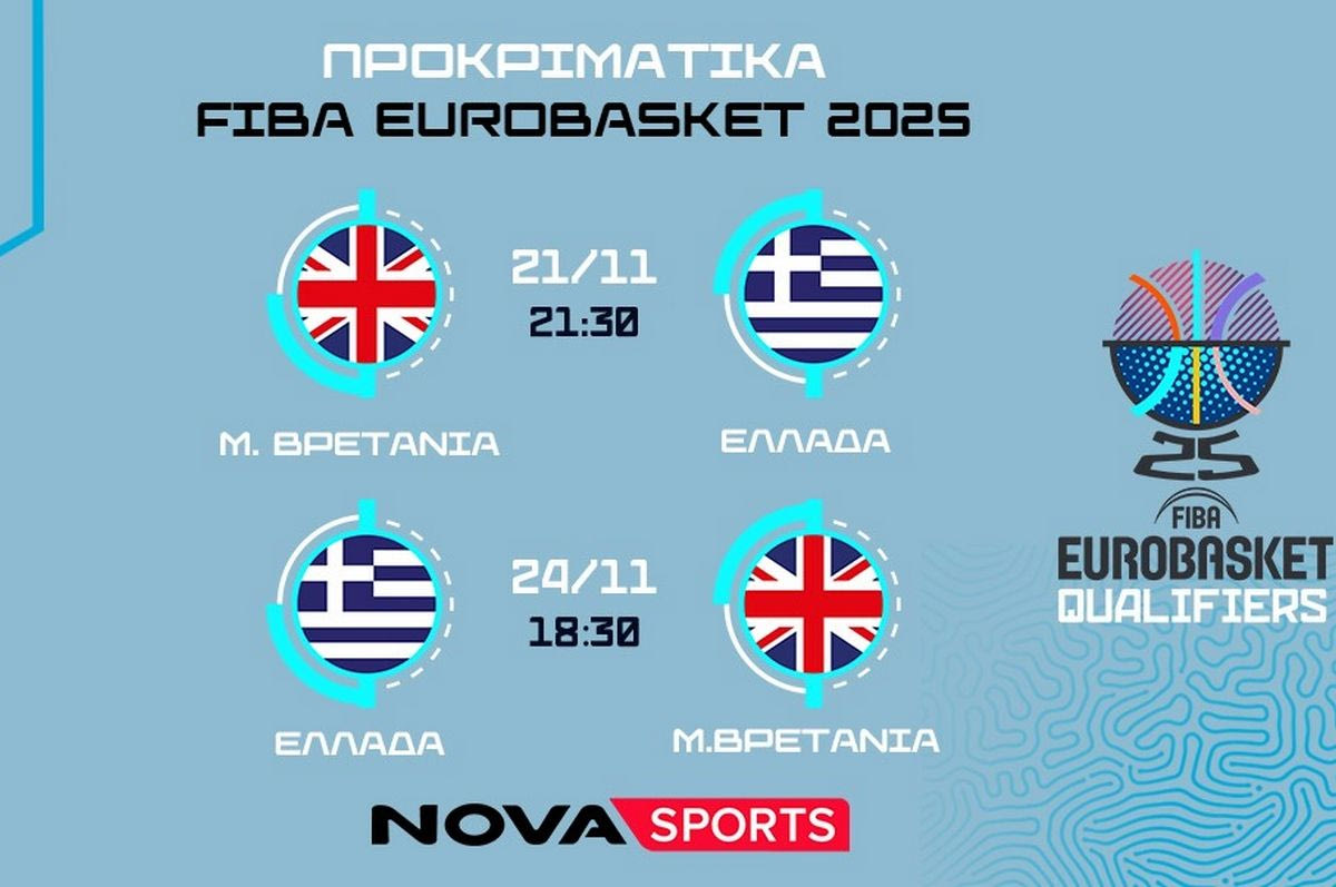 - 21:30 FIBA Eurobasket Προκριματικά 2025: Μ. Βρετανία-Ελλάδα Novasports4 σε περιγραφή του Δημήτρη Καρύδα