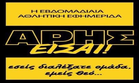 Στα περίπτερα κυκλοφορεί σύντομα και η «Αρης είσαι», όπως είχαμε αναφέρει από καιρό . Θα είναι εβδομαδιαία αθλητική, που έρχεται να καλύψει ένα μεγάλο κενό στον χώρο του γραπτού Τύπου, με αποκλειστικό σκοπό την ενημέρωση των εκατοντάδων χιλιάδων φίλων του Αρη. « Ουσιαστικά, πρόκειται για την υλοποίηση της «απαίτησης» όλων εκείνων που βρίσκονται κοντά και υποστηρίζουν με όλες τους τις δυνάμεις τον ιστορικό Σύλλογο της Θεσσαλονίκης (διανύει φέτος τον 103ο χρόνο «ζωής») και φιλοδοξεί να διατηρηθεί ψηλά στη συνείδηση του φίλαθλου κόσμου, διεκδικώντας νέες διακρίσεις» πόσταρε σχετικά η δημοσιογραφική ομάδα και αυτή είναι και η φιλοδοξία των εμπνευστών της έκδοσης Δημήτρη Παπαϊωάννου και Ηλία Πόππη. Η εφημερίδα «Αρης είσαι!» κυκλοφορεί κάθε Σάββατο με 48 ή 56 σελίδες, με τιμή 1 ευρώ), με σύγχρονο lay out και αποκλειστικά θέματα.