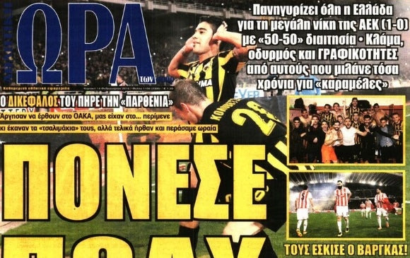 Κυριάρχησε, στα σημερινά πρωτοσέλιδα, φυσικά το Αντερλεχτ – Ολυμπιακός, με τη “Sportday” σε μια ανεπανάληπτη έμπνευση να αναρωτιέται ” Τι σκατά θα βάλουμε πρωτοσέλιδο ρε Ιντέγε; ” και τον ” Πρωταθλητή ” και τον ” Γαύρο ” να τα βάζουν με την περιγραφή του αγώνα από τον OTE TV.