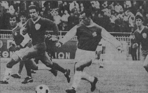 Ο πρώτος “ζωντανός” ποδοσφαιρικός αγώνας ήταν και πάλι στη Θεσσαλονίκη, και πάλι με αγώνα της Εθνικής. Στις 15 Οκτωβρίου 1969 παίξαμε με την Ελβετία στο “Καυτανζόγλειο” για τα προκριματικά του Μουντιάλ και νικήσαμε με 4-1. Γούρι…