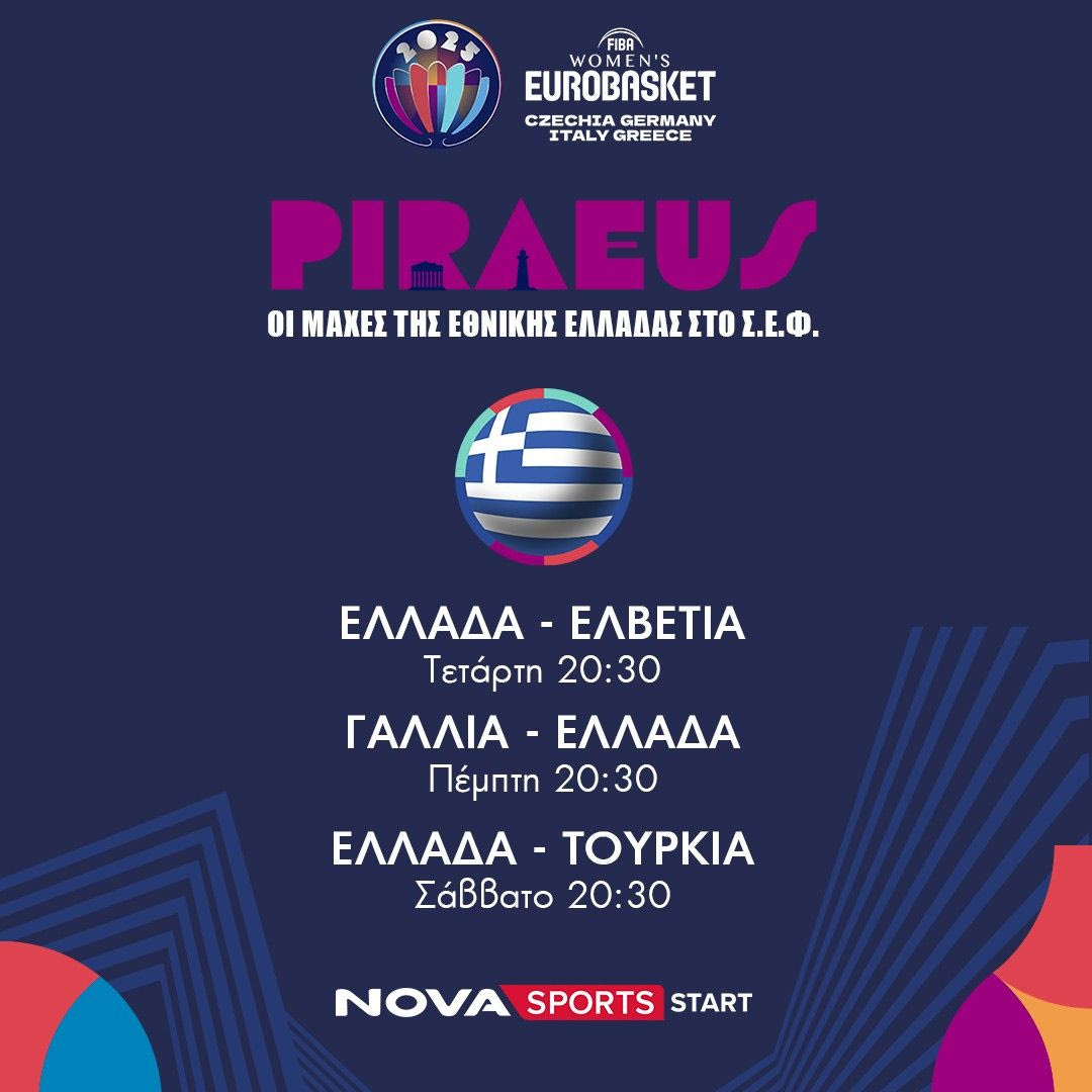 Αναλυτικά το πρόγραμμα του FIBA Women’s Eurobasket στο Novasports έχει ως εξής: