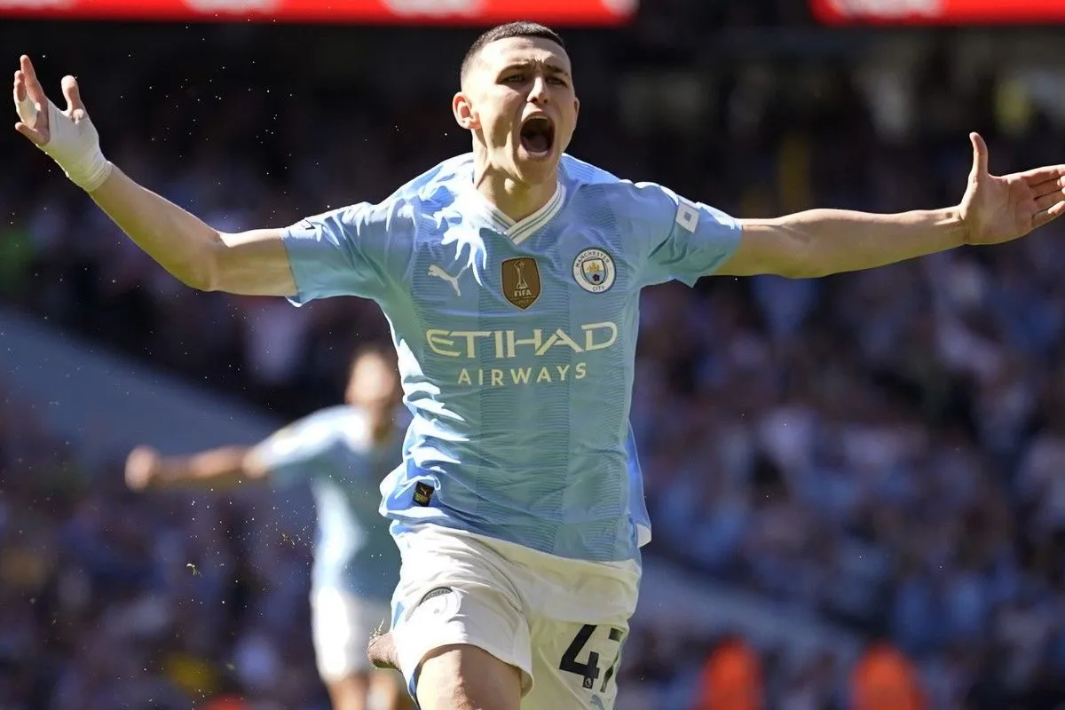 Ο Φιλ Φόντεν πανηγυρίζει γκολ της Μάντσεστερ Σίτι κόντρα στην Γουέστ Χαμ @2024 Dave Thompson/AP IMAGES
