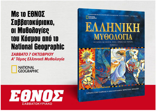 Ακόμη, μην χάσετε αυτό το Σάββατο μαζί με το ΕΘΝΟΣ Σαββατοκύριακο τον πρώτο τόμο της ελληνικής μυθολογίας, από τη σειρά “Μυθολογίες του Κόσμου” του National Geographic. Στον πρώτο τόμο, το National Geographic ζωντανεύει τους ελληνικούς μύθους με ένα λυρικό κείμενο του συγγραφέα Donna Jo Napoli και με εικονογράφηση της βραβευμένης Christina Balit. Οι περιπέτειες των 12 θεών όπως ο Δίας, η Αφροδίτη, ο Απόλλων και η Αθηνά καθώς και γνωστές ιστορίες όπως η Ελένη της Τροίας, o Περσέας και η Μέδουσα θα μεταφέρει τους αναγνώστες στον φανταστικό κόσμο της ελληνικής μυθολογίας.