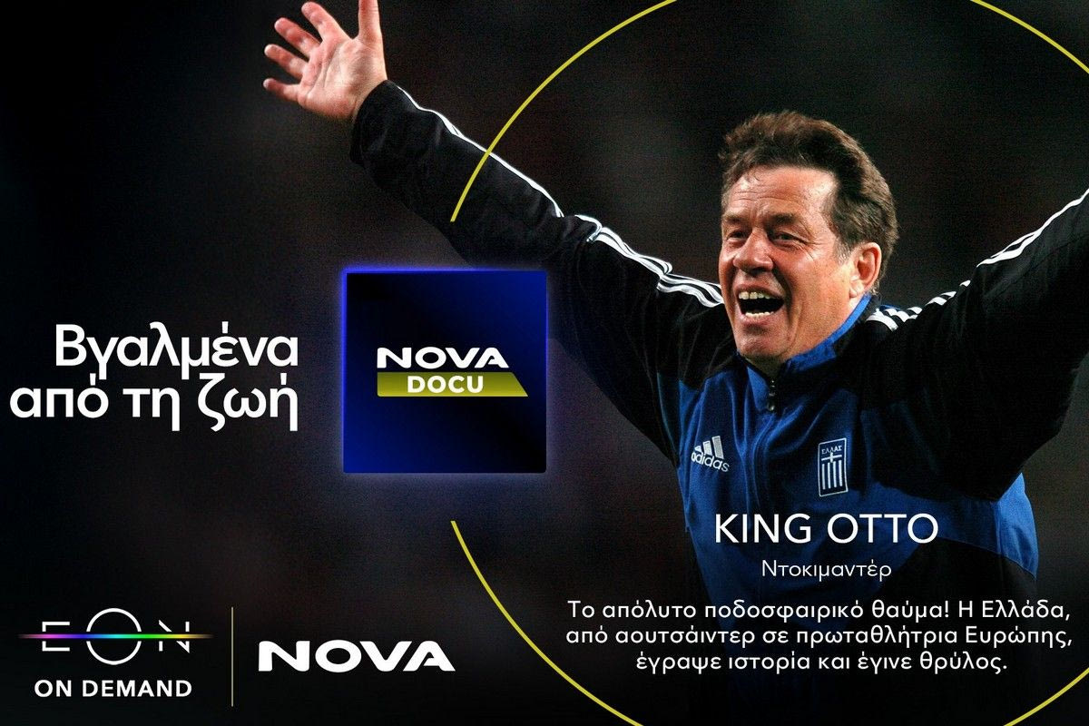 Μεταξύ των ντοκιμαντέρ που είναι άμεσα διαθέσιμα στον κατάλογο Nova Docu είναι: King Otto: Ζήσε ξανά την απόλυτη ιστορία του αουτσάιντερ – πώς το 2004, η Ελλάδα και ο «Βασιλιάς» Ότο έγραψαν ιστορία στο ποδόσφαιρο! Το καλοκαίρι του 2004, οι θεατές παρακολουθούσαν την εθνική ομάδα ποδοσφαίρου, που δεν είχε διακριθεί σε κάποια μεγάλη διοργάνωση, να κατατροπώνει τους γίγαντες του παγκόσμιου ποδοσφαίρου και να γίνεται η πιο αναπάντεχη πρωταθλήτρια Ευρώπης. Ο αρχιτέκτονας πίσω από αυτόν τον πρωτοφανή θρίαμβο ήταν ο θρυλικός Γερμανός προπονητής ποδοσφαίρου «βασιλιάς» Ότο Ρεχάγκελ. Αφού σημείωσε σημαντικές επιτυχίες στη Γερμανία, πήρε την τολμηρή απόφαση να αφήσει πίσω του όλα όσα γνώριζε και να εργαστεί σε μια ξένη χώρα. Αυτή είναι η ιστορία, του πώς αυτοί οι δύο αντίθετοι πολιτισμοί συναντήθηκαν, για να μιλήσουν την ίδια γλώσσα και να γράψουν ένα νέο κεφάλαιο μυθολογίας.