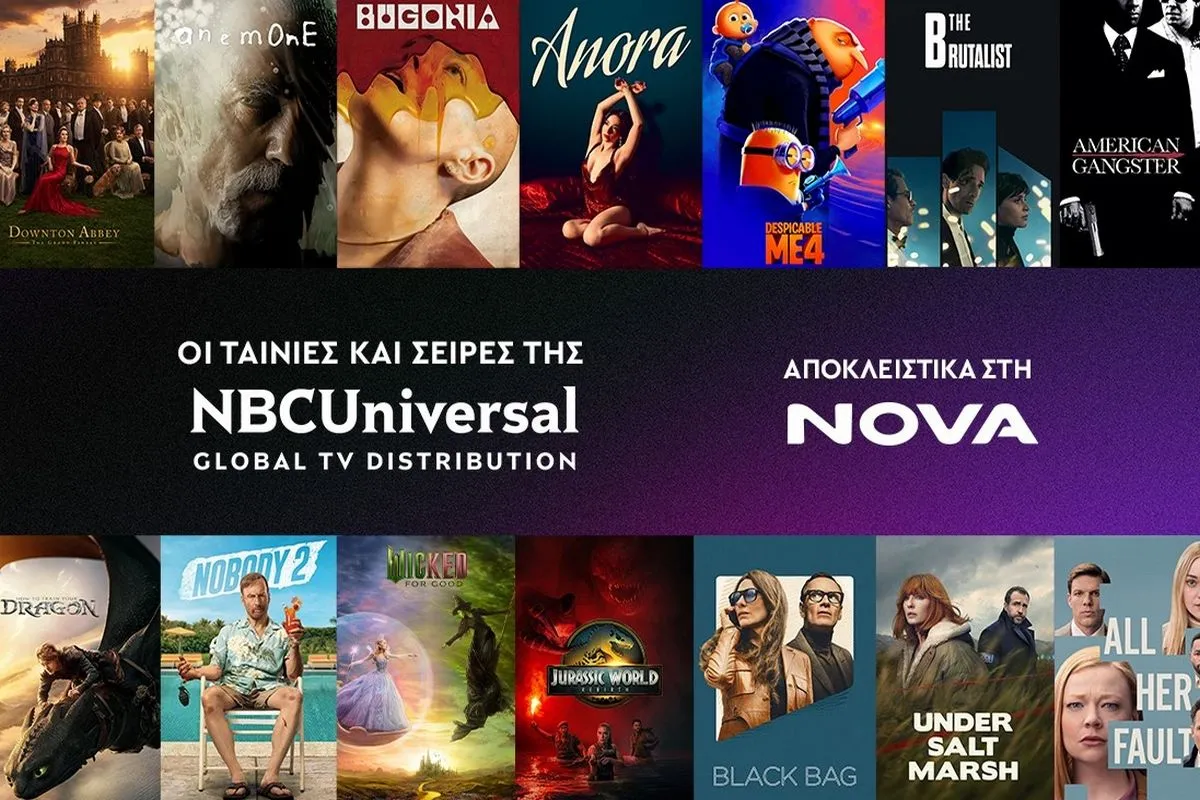 Στις κινηματογραφικές ταινίες που θα κάνουν πρεμιέρα αποκλειστικά στα κανάλια Novacinema μέσω της συμφωνίας περιλαμβάνεται η βραβευμένη με Όσκαρ® ταινία “Anora”, που τιμήθηκε με το Όσκαρ Καλύτερης Ταινίας το 2025, καθώς και με Όσκαρ Καλύτερης Σκηνοθεσίας για τον Sean Baker και Καλύτερης Γυναικείας Ερμηνείας για τη Mikey Madison, καθώς και το επικό δράμα εποχής “The Brutalist”, το οποίο χάρισε το βραβείο Α’ Ανδρικού Ρόλου στον Adrien Brody το 2025. Επιπλέον, το κοινό θα απολαύσει τα εντυπωσιακά μιούζικαλ και μοναδικά franchises “Wicked” και “Wicked: For Good”, με πρωταγωνίστριες τις Ariana Grande και Cynthia Erivo, καθώς και τα αριστουργήματα “Anemone” με τον Daniel Day-Lewis και “Bugonia” του Γιώργου Λάνθιμου.
